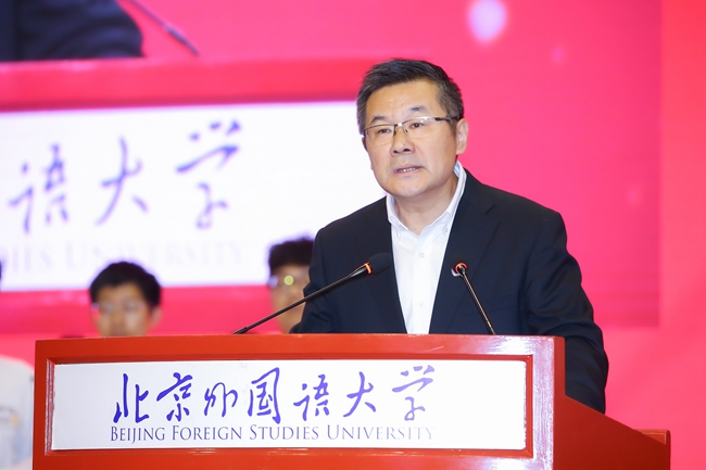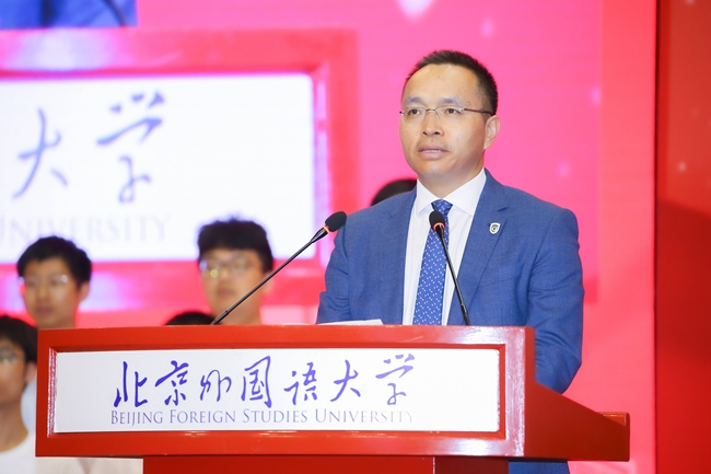 教師代表、北外歷史學(xué)院/全球史研究院院長李雪濤在發(fā)言中結(jié)合自己的人生經(jīng)歷,分析了大學(xué)教育與基礎(chǔ)教育階段的不同,希望同學(xué)們能在大學(xué)里學(xué)會(huì)獨(dú)立思考和批判性分析,在北外擁有國際視野、掌握跨文化理解能力,更好地理解世界、理解文明、理解自身,為實(shí)現(xiàn)夢想不懈努力。
