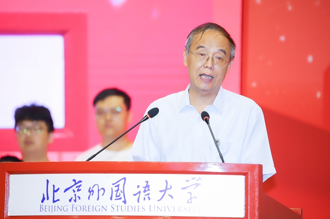 楊丹作了題為“做又紅又專又雅的北外人”的講話,對2023級新生表示熱烈歡迎和祝賀。他回顧了北外80余年的辦學(xué)歷史和發(fā)展成就,并對新一代“北外人”提出三點(diǎn)期望: