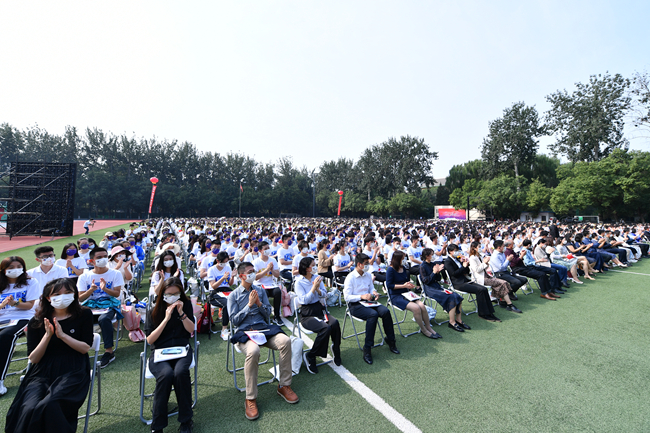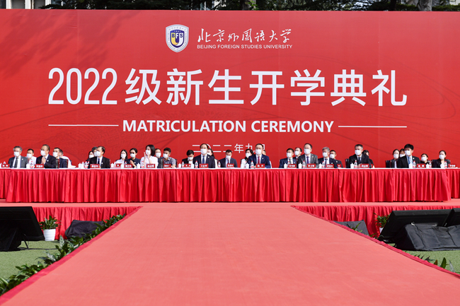風和日麗,金秋朗朗。2022年9月3日,北京外國語大學2022級新生開學典禮在東校區體育場隆重舉行。3008名新同學加入北外大家庭,開啟人生新征程。