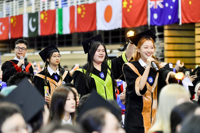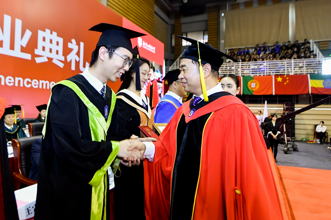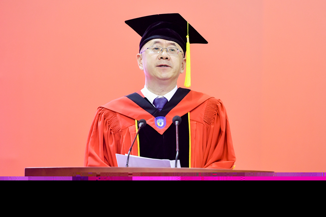 賈文鍵以“兼容并蓄、博學篤行”的校訓為指引,激勵畢業生們以博大的胸懷擁抱世界,勇敢面對未來挑戰,不僅為人民服務,也為世界增添光彩,共同書寫人類命運共同體的美好篇章。
