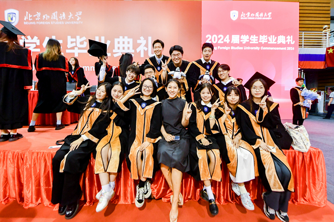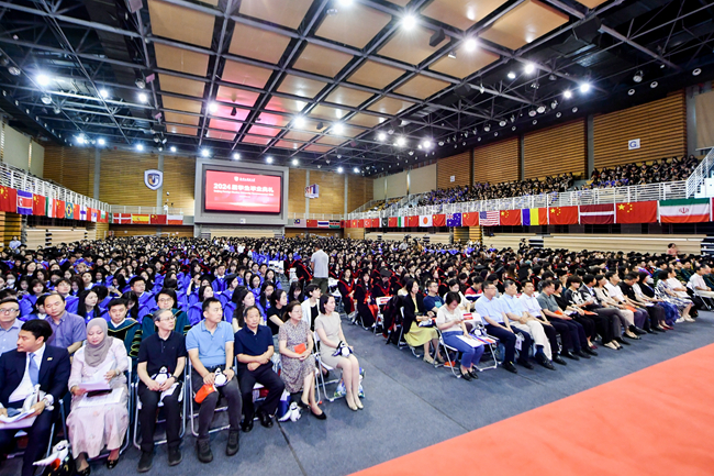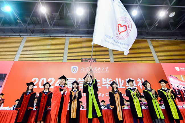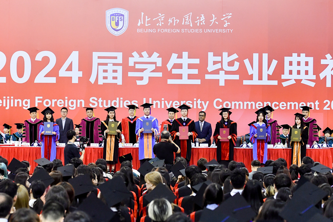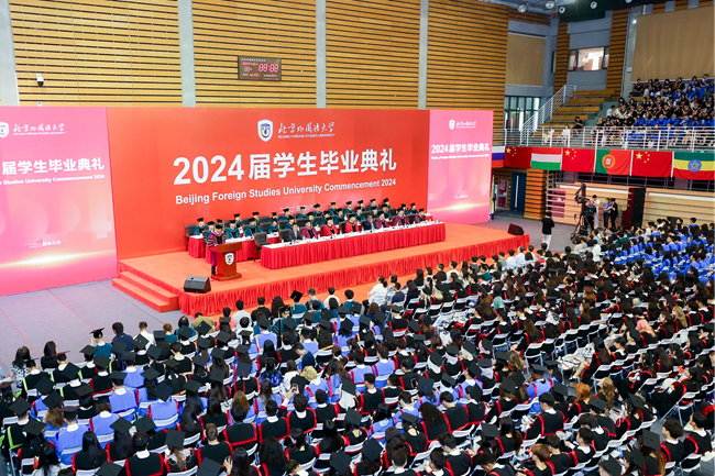6月28日,北京外國語大學2024屆學生畢業典禮在體育館隆重舉行。
