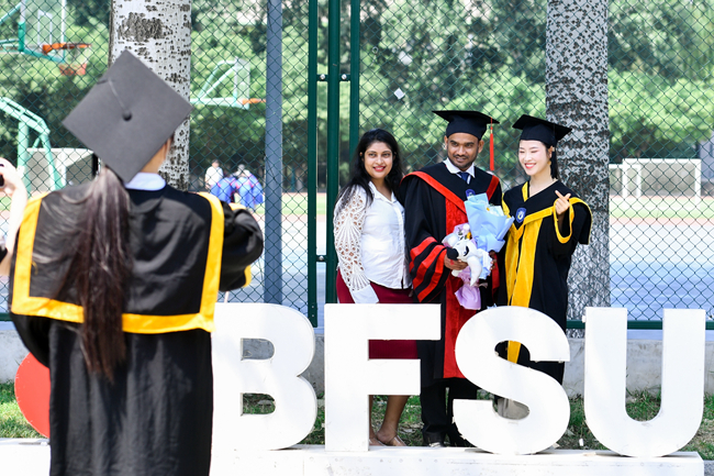 賈文鍵向即將踏上人生新征途的學子們提出了三點期望:一是懂得總結,善于規劃。北外學子應反思過去,從經歷中汲取養分,學會總結個人的得失,以過往為鑒,照亮未來之路。制定人生規劃時,應志存高遠,腳踏實地,設立清晰目標,步步為營,確保每一步都朝著既定的方向邁進。思考五年或十年后的自我形象,以此為動力,精心布局,不懈奮斗。二是學習合作,眾行者遠。要認識到合作的重要性,無論是日常生活的小范圍協作,還是國際舞臺上的大外交,理解與包容是基礎。要提倡多元思維和團隊精神,了解掌握跨學科知識、擁有團隊合作能力是解決復雜問題的關鍵。在合作中不斷學習與成長,攜手共進,能夠走得更遠。三是心懷家國,擁抱世界。畢業生要銘記北外精神,在深化中外交流、增進各國人民友誼、推動構建人類命運共同體中發揮作用。利用自身語言優勢,成為文化傳播的橋梁,傾聽世界、理解差異,以全球視野和開放心態參與國際事務,為促進世界和平與發展貢獻力量。