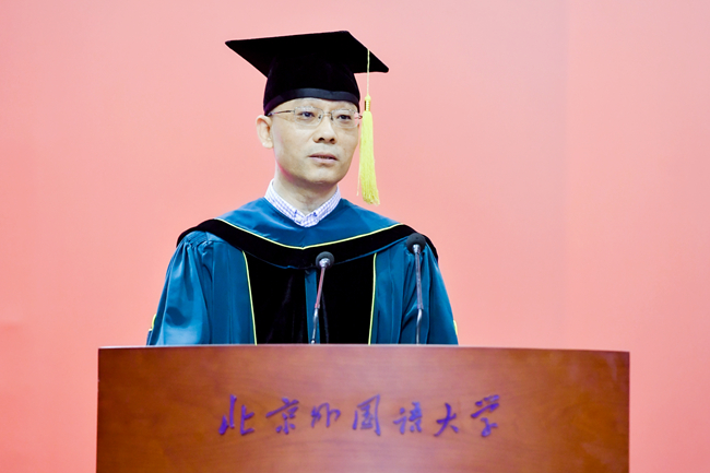 英語學院教授、博士生導師、2024首都勞動獎章獲得者張威作為教師代表發言,為即將走出校門的畢業生們送上真摯祝福。他鼓勵畢業生們要自信面對挑戰,張揚青春風采;真誠為熱、樂于奉獻,融入集體之中;嚴謹為學、勤勉為事,成為青年的表率;永不懈怠,不負韶華,迎接挑戰,成為最硬核的自己。