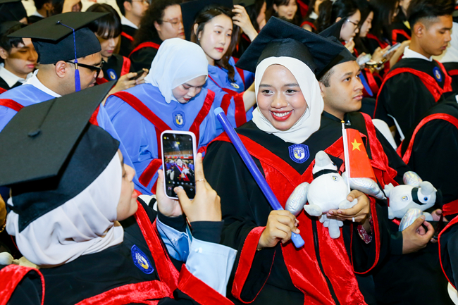 此次畢業典禮全程網絡直播。馬來西亞駐華使館副館長努爾法利納·默罕默德·阿茲米、教育參贊默罕默德·沙烈胡丁·穆罕默德·迪利夫,埃塞俄比亞駐華大使館三等秘書拉特召爾·那哈勒·里爾,北外各學院、相關職能部處負責人,教師代表,2800余名2024屆本科生、研究生、留學生參加畢業典禮。