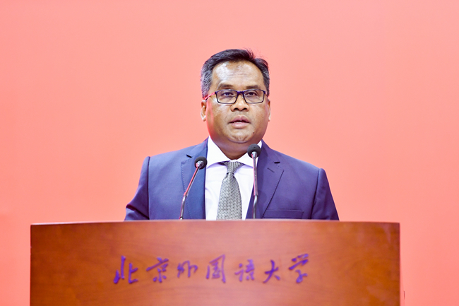 諾曼回顧了中馬友好交流的百年歷史,強調北外在馬中教育交流中承擔著十分重要的聯接作用,同時邀請馬來語專業學生在讀期間前往馬來西亞高校交換學習,領悟馬來文化。他表示,當前世界充滿挑戰,需要擁有“卓越靈魂與完美品質”的優秀人才,這也與中國的“人類命運共同體”理念不謀而合。希望北外學子可以成為為全球可持續發展作出貢獻的優秀人才。